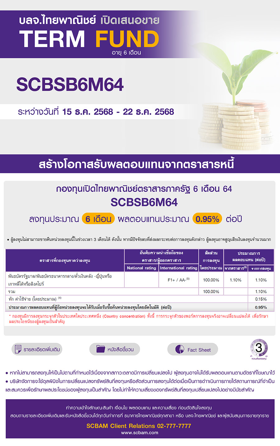 SCBAM launches SCB Sovereign Bond 6M64 (SCBSB6M64) offering during 15 – 22 DEC 2025