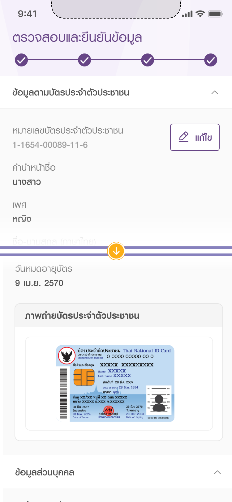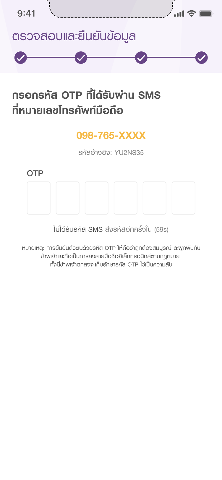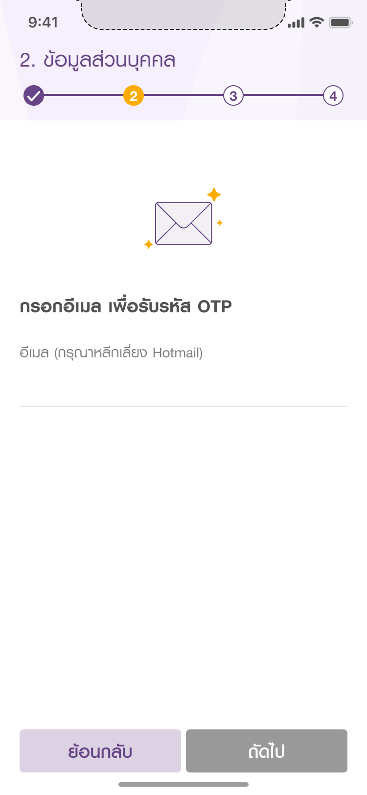 - ยืนยันข้อมูลส่วนบุคคล (หมายเลขบัตรประจำตัวประชาชน / E-mail และ E-mail OTP)