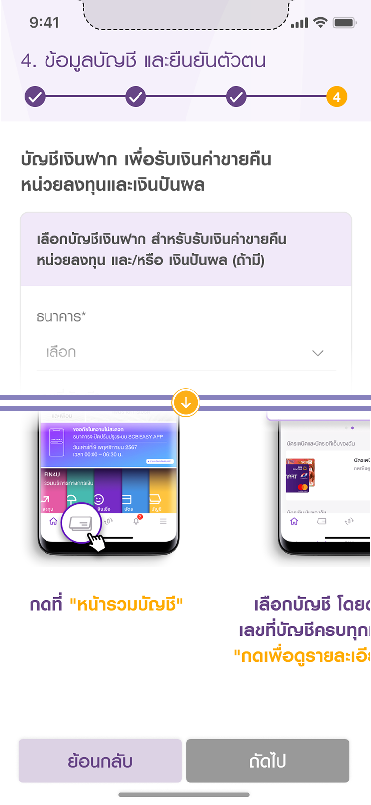 - แสดงข้อมูลเลขทะเบียนผู้ถือหน่วยลงทุนทั้งหมด และกด “ต่อไป”