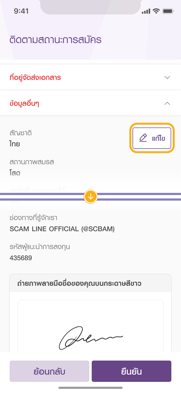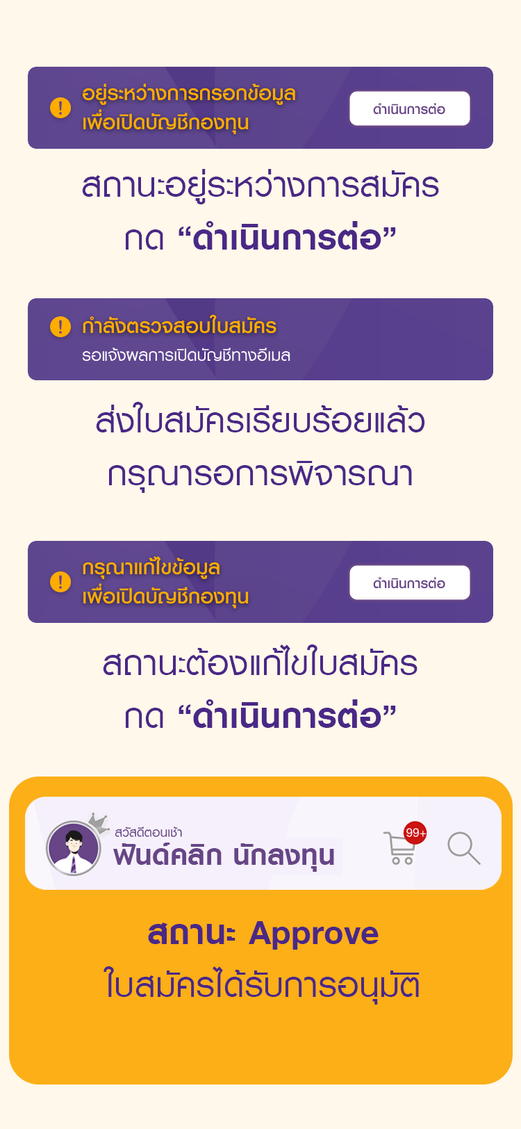 ท่านจะได้รับการแจ้งผ่านทางข้อความ SMS และอีเมล ([email protected]) “กรุณาแก้ไขคำขอเปิดบัญชี SCBAM Fund Click”