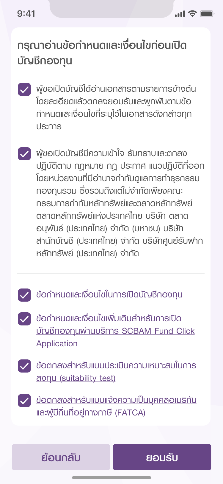 - อ่านเงื่อนไขกด “ยอมรับ” ให้ครบทุกกองทุน