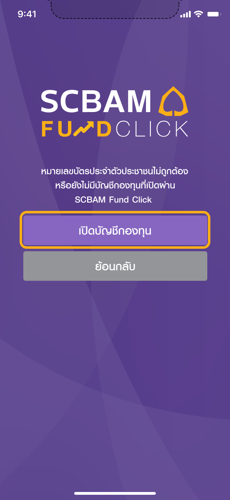 - สำหรับผู้ลงทุนที่ได้เคยเปิดบัญชีโดยตรงกับบลจ. สามารถทำการซื้อขายผ่านแอปพลิเคชัน SCBAM Fund Click ได้โดยไม่ต้องเปิดบัญชีใหม่