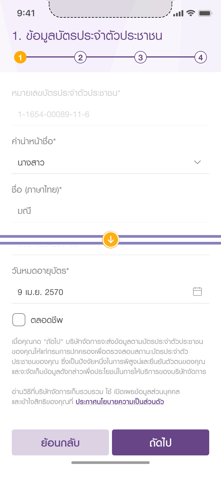 - หมายเลขบัตรประชาชน - ใส่หมายเลขบัตร 13 หลักให้ครบถ้วน