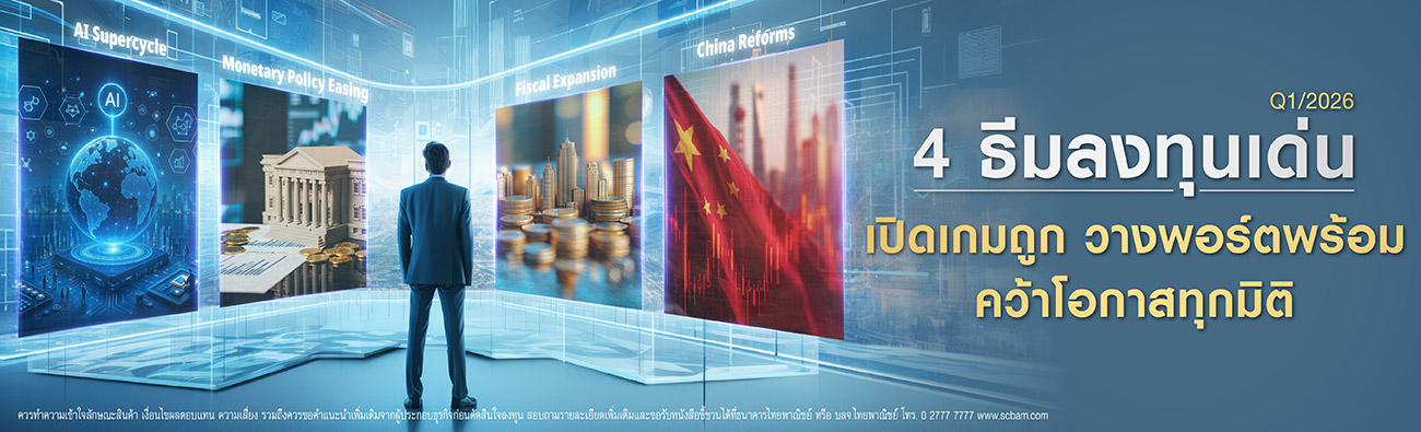 บทวิเคราะห์ฉบับนี้ เจาะลึกมุมมองการลงทุน, โอกาสและความเสี่ยงในปี 2026 สำหรับสินทรัพย์แต่ละประเภท ทั้งตลาดหุ้นทั้งไทยและต่างประเทศ, ตราสารหนี้ในประเทศและต่างประเทศ รวมถึง สินทรัพย์ทางเลือก โดยสรุป เราให้น้ำหนักกับหุ้นต่างประเทศ มากกว่า หุ้นไทย โดยตลาดหุ้นที่เรามีมุมมองเชิงบวกในปีนี้ ได้แก่ ตลาดหุ้นสหรัฐฯ, จีน และเกาหลีใต้ ขณะที่สินทรัพย์ทางเลือก เราชอบ REITs เป็นหลัก