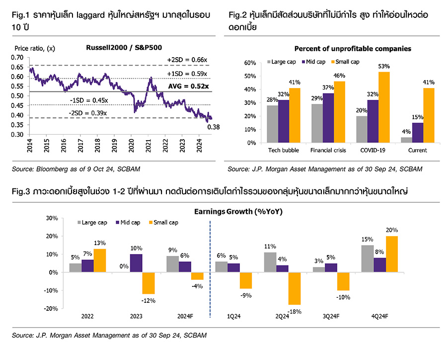 เรามีมุมมองเชิงบวกต่อกลุ่มหุ้นขนาดเล็กสหรัฐฯ มากขึ้น คาดว่ามีโอกาสปรับตัวขึ้นเด่นในช่วง 4Q24 เนื่องจากจุดเปลี่ยนสำคัญ ดังต่อไปนี้