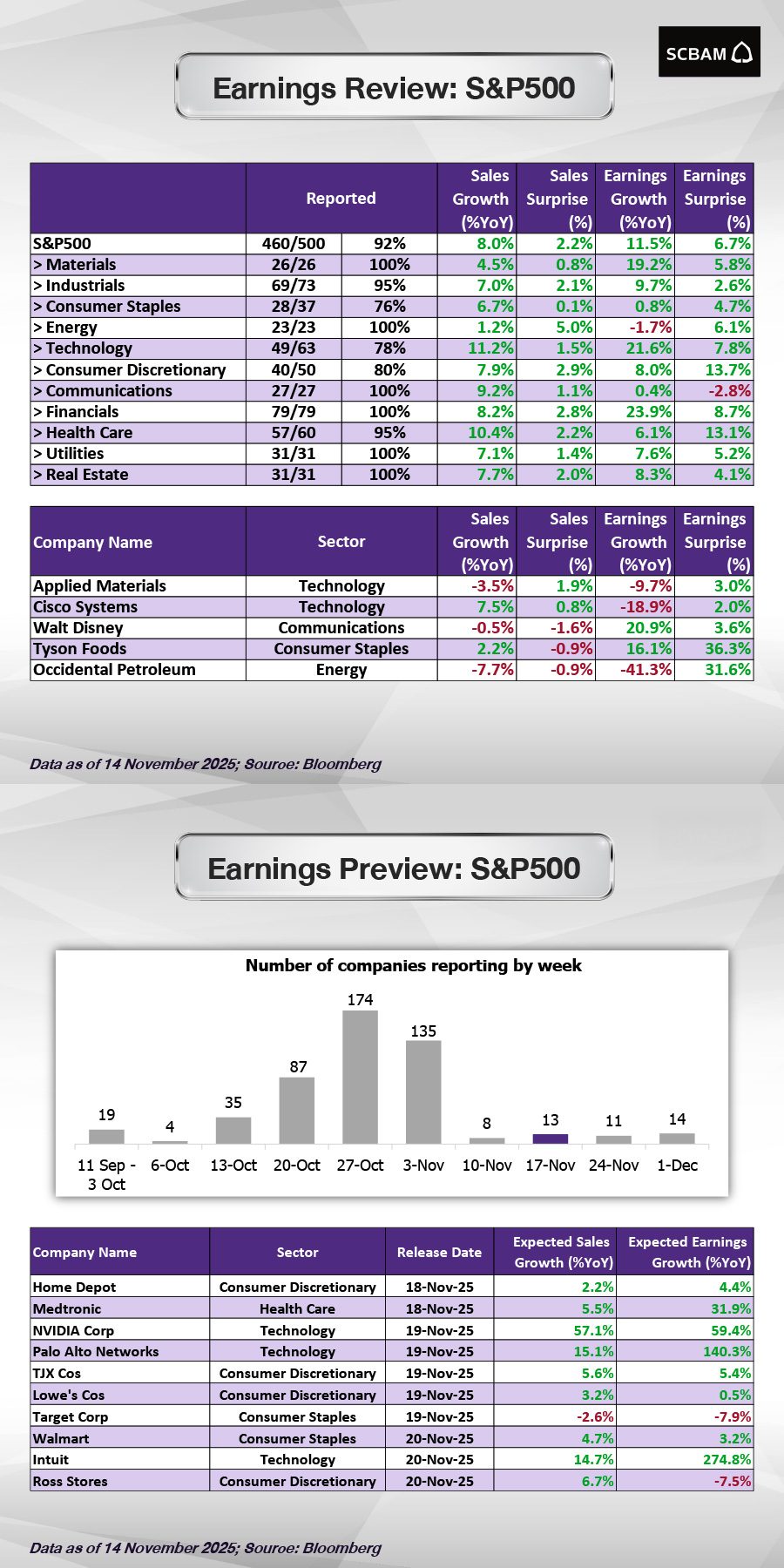 กางผลประกอบการแต่ละกลุ่มธุรกิจ และบริษัทต่างๆ ในดัชนี S&P500 ประจำสัปดาห์ (ข้อมูล ณ วันที่ 14 พฤศจิกายน 2568)