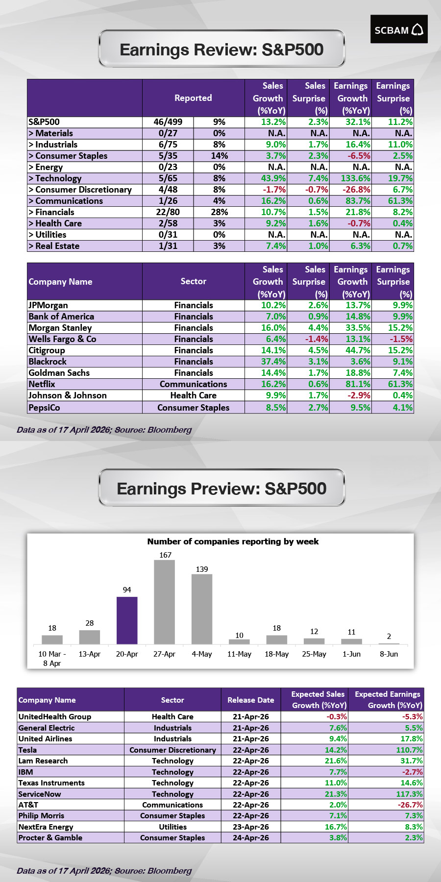 กางผลประกอบการแต่ละกลุ่มธุรกิจ และบริษัทต่างๆ ในดัชนี S&P 500 ประจำสัปดาห์ (ข้อมูล ณ วันที่ 17 เม.ย. 2569)