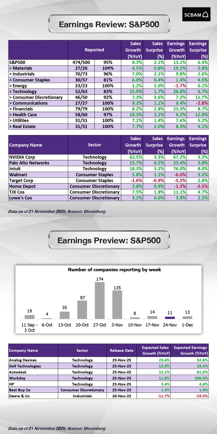 กางผลประกอบการแต่ละกลุ่มธุรกิจ และบริษัทต่างๆ ในดัชนี S&P500 ประจำสัปดาห์ (ข้อมูล ณ วันที่ 21 พฤศจิกายน 2568)