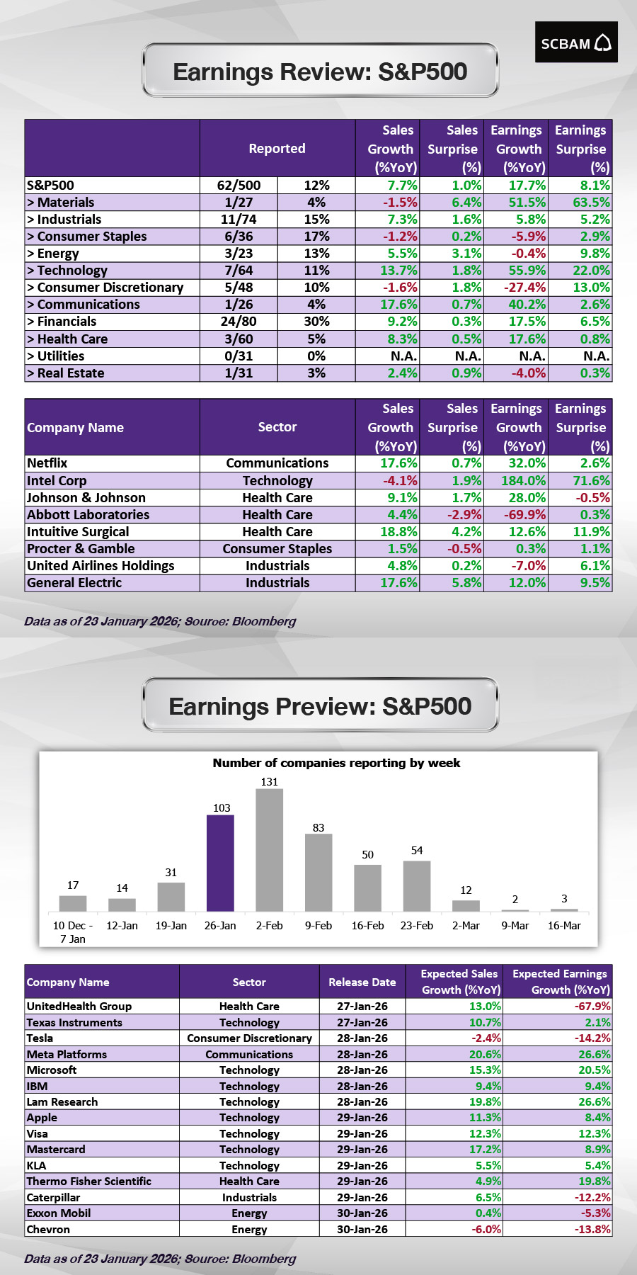 กางผลประกอบการแต่ละกลุ่มธุรกิจ และบริษัทต่างๆ ในดัชนี S&P 500 ประจำสัปดาห์ (ข้อมูล ณ วันที่ 23 มกราคม 2569)