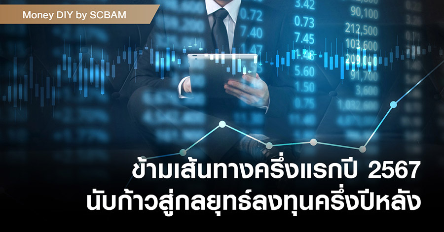 ตลาดหุ้นไทยในช่วงครึ่งแรกของปี 2567 ยังคงซบเซาจากปัจจัยกดดันทั้งภายในและภายนอกประเทศ ซึ่งสำหรับปัจจัยภายนอก คงหนีไม่พ้นเรื่องความคาดหวังการปรับลดดอกเบี้ยของธนาคารกลางสหรัฐ (Fed) ที่อาจจะไม่เร็วและมากเท่ากับที่ตลาดคาดเอาไว้แต่เดิม ส่งผลให้ผลตอบแทนพันธบัตรรัฐบาลสหรัฐฯ 10 ปีปรับตัวขึ้นไปทำระดับสูงสุดที่ประมาณ 4.7% จาก 3.9% เมื่อสิ้นปีที่แล้ว กดดันสภาวะการลงทุนในสินทรัพย์เสี่ยงอย่างตลาดหุ้นทั่วโลกและรวมถึงตลาดหุ้นไทย นอกจากนี้ ปัจจัยกดดันเพิ่มเติมที่เป็นเรื่องภายในประเทศมีความล่าช้าในการอนุมัติ พรบ.งบประมาณปี 2567 ที่ยังคงเป็นอุปสรรคต่อการฟื้นตัวของเศรษฐกิจในประเทศ ซึ่งสะท้อนมายังภาพรวมเศรษฐกิจไทย ทำให้ไตรมาสที่ 1 ที่ผ่านมา เศรษฐกิจไทยขยายตัวเพียง 1.5% เมื่อเทียบกับ 2.7% ในไตรมาสแรกของปี 2566 หรือเทียบกับประมาณการเศรษฐกิจไทยปี 2567 ที่คาดว่าจะโตประมาณ 2.5%