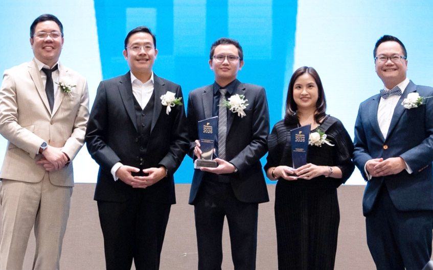 SCBAM คว้า 2 รางวัลสุดยอดกองทุนจากเวที Hall of Funds 2026 by FINNOMENA รางวัลนี้สะท้อนถึงความมุ่งมั่นของ SCBAM ในการพัฒนากองทุนคุณภาพเพื่อผู้ลงทุนอย่างต่อเนื่อง โดยมี คุณวิจักรณ์ ณ เชียงใหม่ Director ฝ่ายการลงทุนผ่านกองทุนต่างประเทศ (ที่ 3 จากซ้าย) และ คุณนวรัตน์ เจียมกิจรุ่ง Director ฝ่ายพัฒนาผลิตภัณฑ์การลงทุน (ที่ 4 จากซ้าย) เข้ารับมอบรางวัลเมื่อเร็วๆ นี้